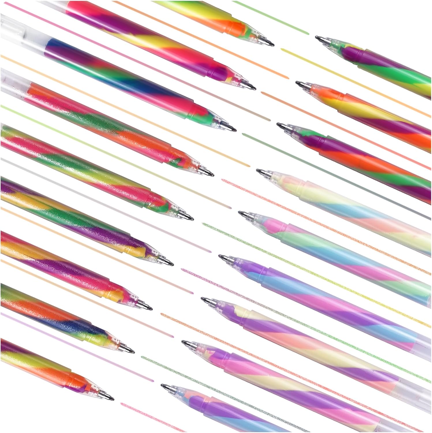 LIULIUCAI 18 Pack Rainbow Gel Pens with Upgraded Tip,Magic 3 Color Mixing Gel Pens Set, Glitter/Neon/Pastel for Adult Coloring Books, Journaling, Doodling, Stable Colorful Art Supplies