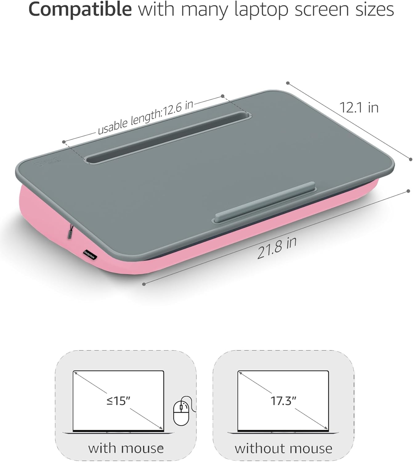 Lap Desk with Washable Cushion – Fits up to 17-In Laptops – Portable Laptop Desk & Stand – Bed desks & Tray for Writing, Reading, Working, Gaming on Bed, Couch, Floor – Istudyniture - Large, Rose Pink