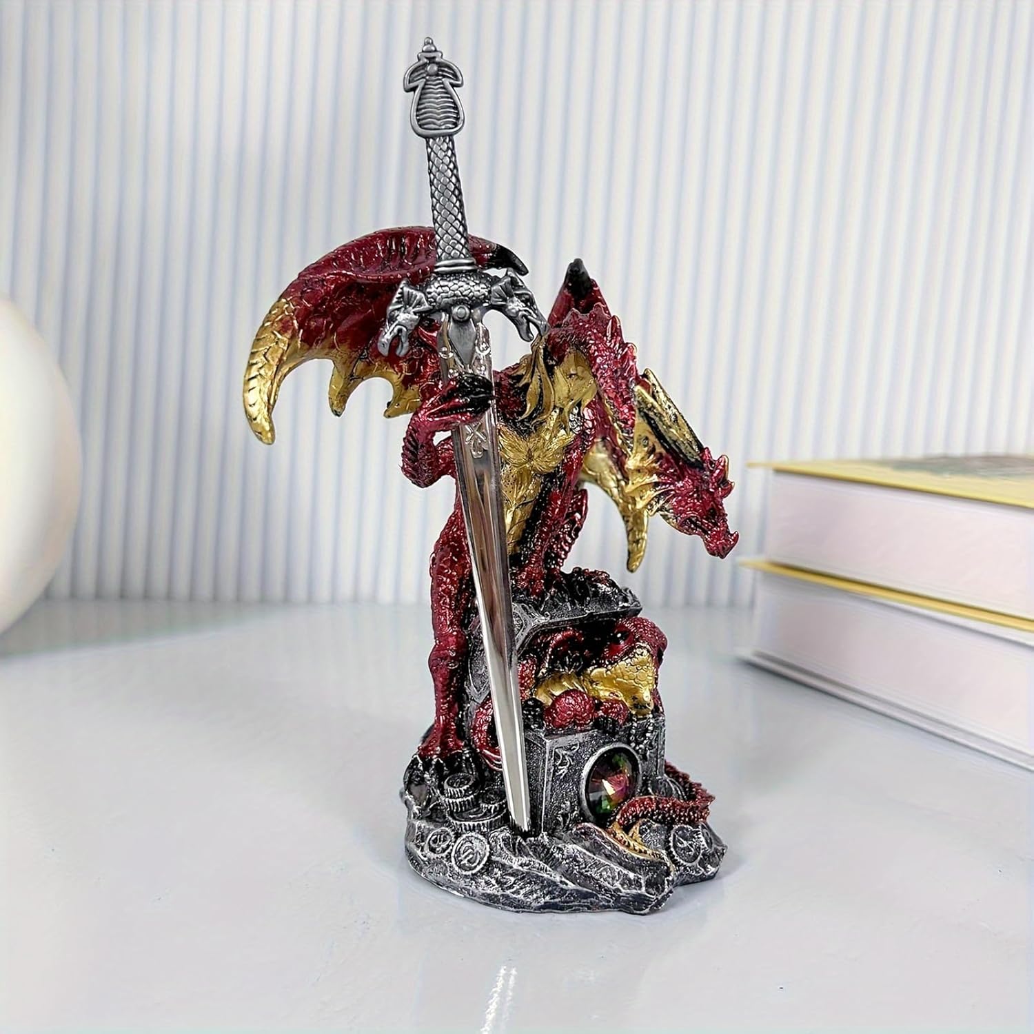 - 【Wide Application】Display your new dragon with sword in your bedroom, living room, on your office desk, on a bookshelf, on the coffee table, or in your own dragon figurine fantasy created world.