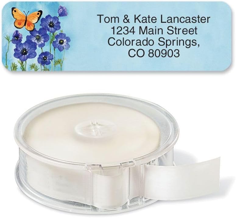 Colorful Images Floral Wings Rolled Personalized Return Address Mailing Labels with Dispenser, 5 Designs, Set of 500, Small ¾ x 2½ Inch Size, Custom Self-Adhesive Sticker Roll