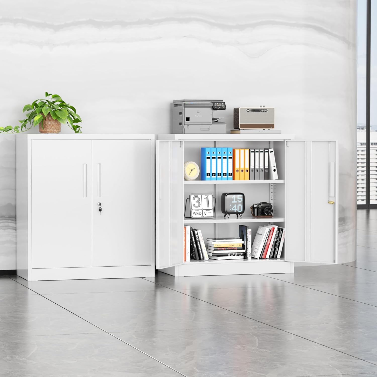 - 【Security design】We've upgraded the locks of the locking file cabinet. It now has a 3-point locking system and comes with 2 keys for better privacy and security of your belongings. Both doors are reinforced with extra steel for added protection. It offers greater security for your valuables and important items, allowing you to safely store and access your tools.