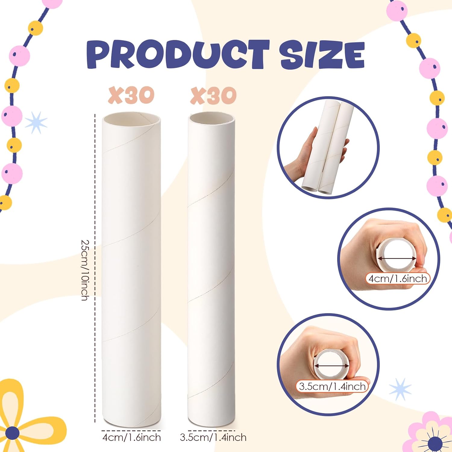 - Package Includes: you will receive 60 pieces of cardboard tubes for crafts, 2 sizes, 1.4 x 10, 1.6 x 10 Inch, 30 pieces of each size; Make sure you have enough supply to meet your art projects, classroom activities or DIY needs