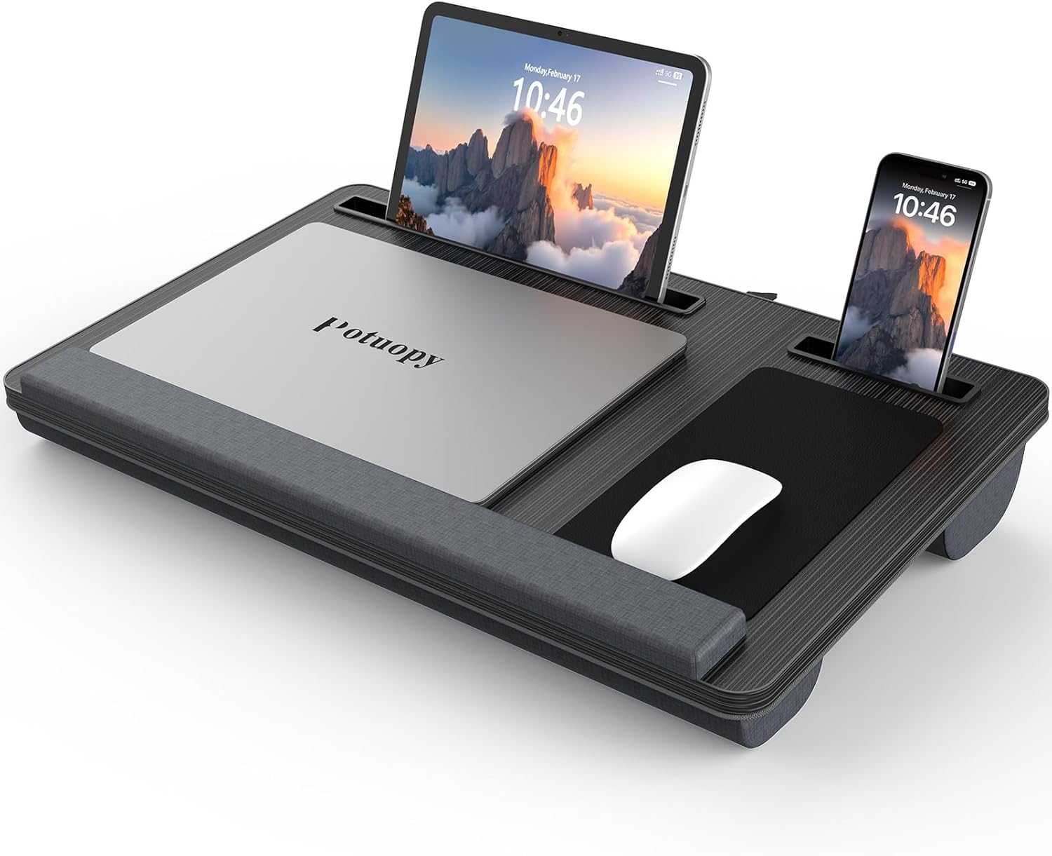 - Stay Organized: The lap desks for adults features tablet & phone slots for multiple devices and a fixed mouse pad. Laptop stand for bed make it convenient and organized for both work and leisure.