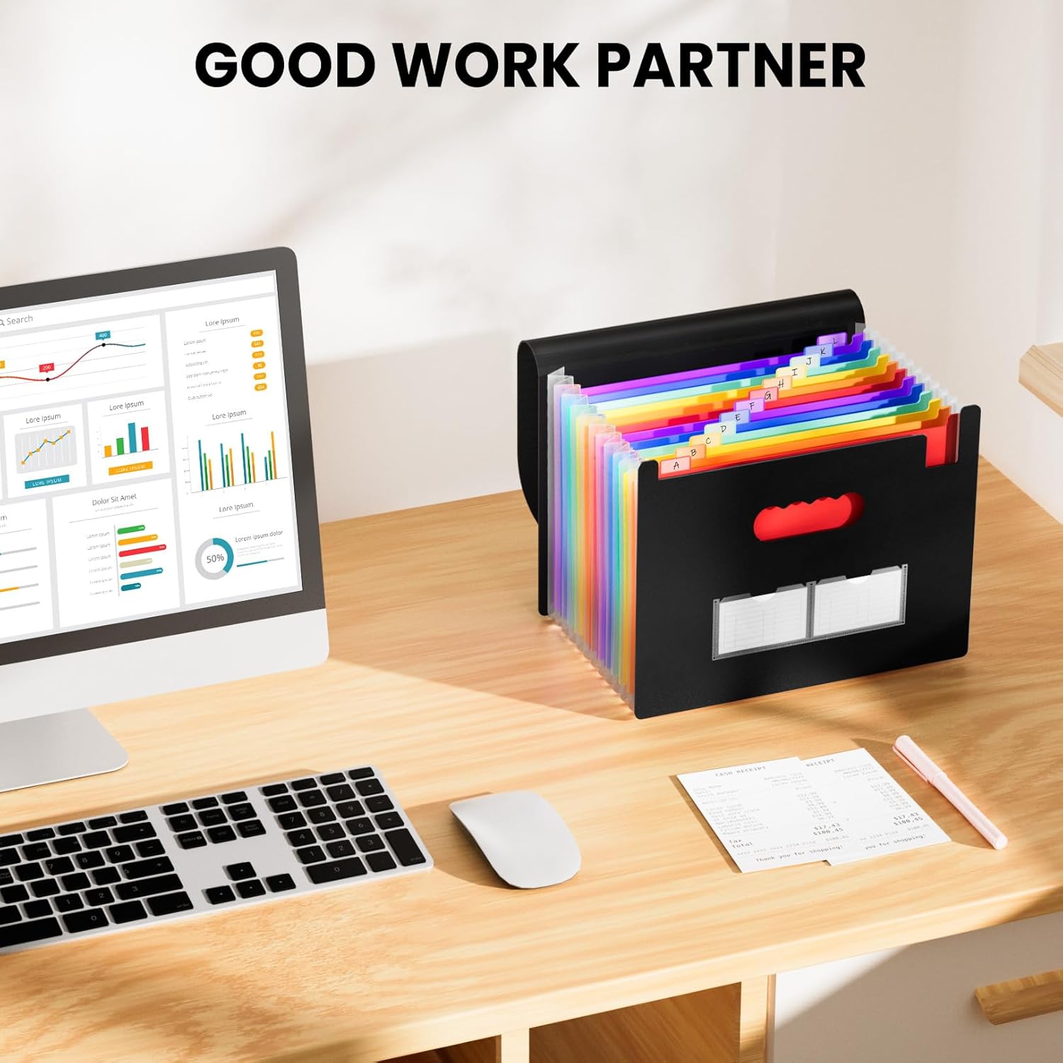 - All-In-One Monthly Organizer: Keep all your important documents in one place with Sooez Accordion File Organizer. 13 pockets design works great for Monthly organizing and protecting all your important paperwork, bills, taxes, receipts, invoices and more. Perfect for letter size.