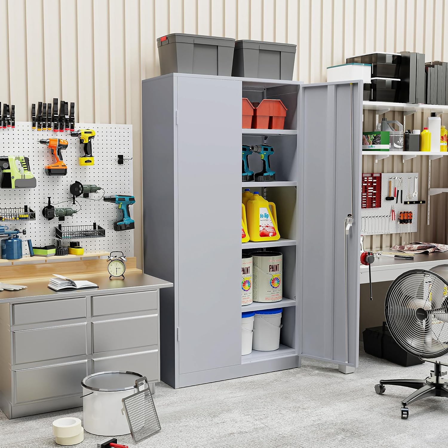 SUNCROWN 72" Metal Storage Cabinet - Heavy-Duty Metal Garage Cabinet with 4 Adjustable Shelves & 2 Doors for Tools, Office, Home, Workshop,Cement Grey-Small