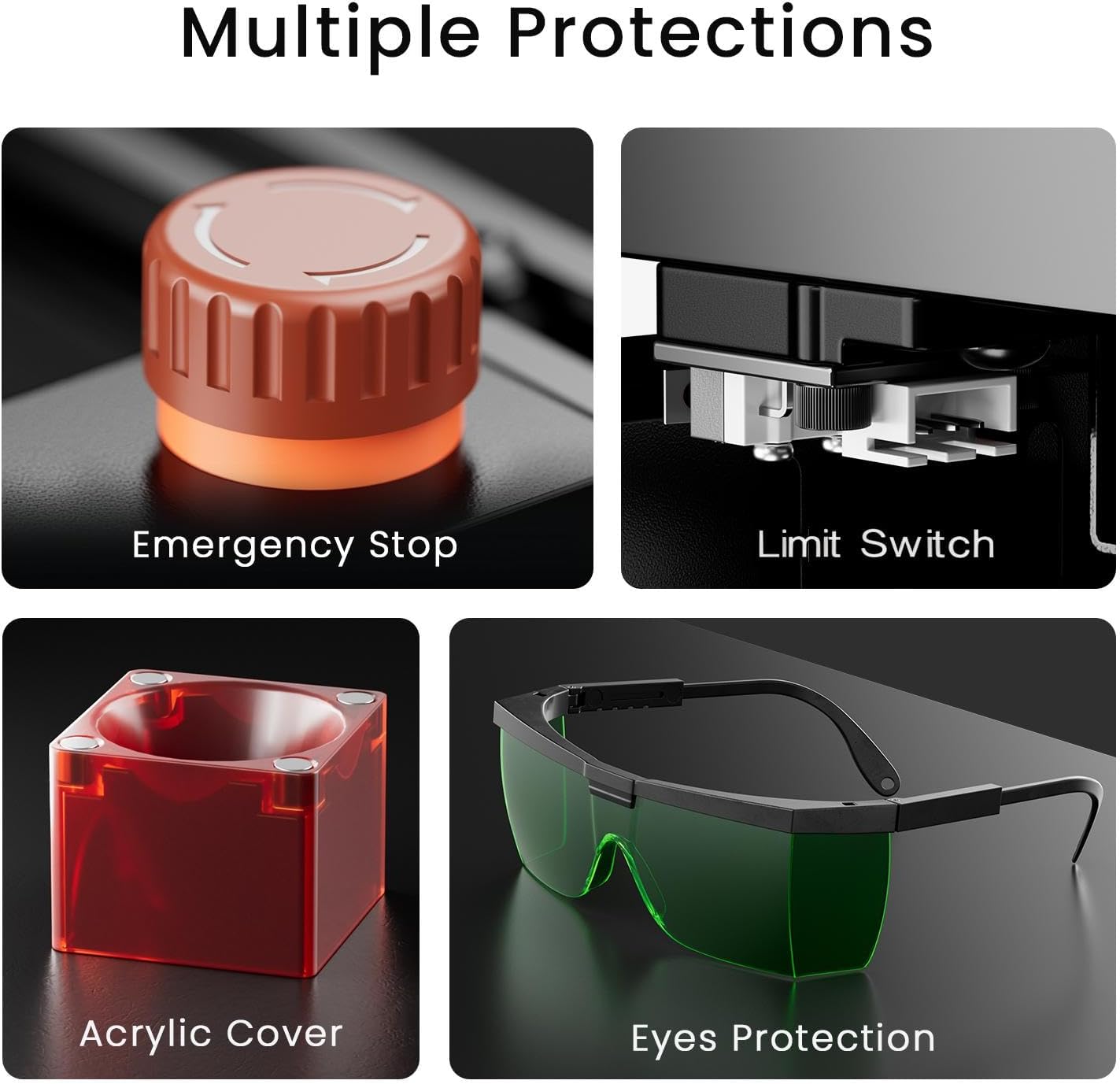- 3. Safety-First Design: Work with confidence thanks to the included protective glasses that help reduce eye exposure. The emergency stop button adds extra peace of mind, giving you full control in any situation.