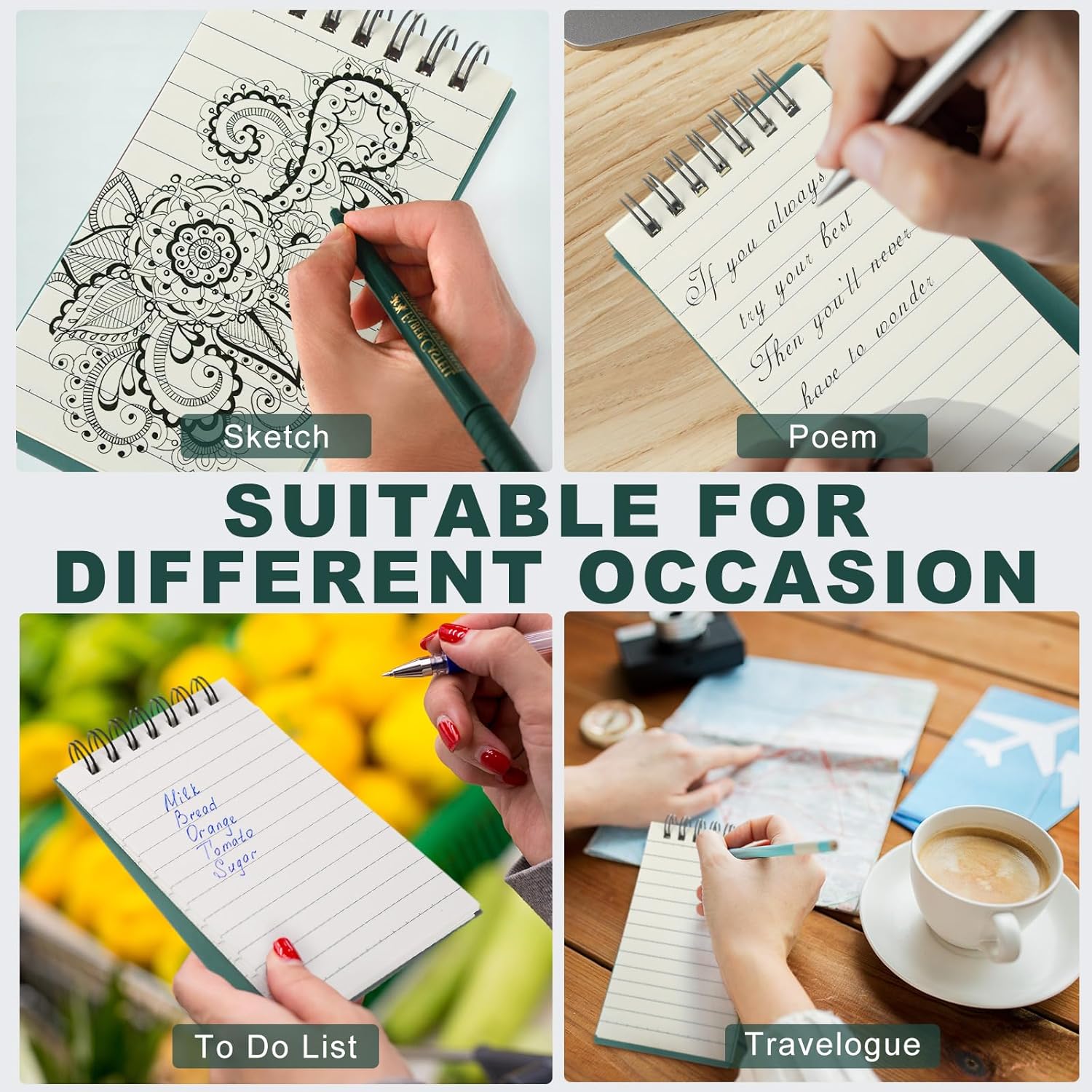 • Wide Usage: the mini spiral notepad is ideal for journaling, note taking, poetry writing, sketching and painting, work notes, study notes, mood journals and more; It can be applied in home, office, school, college, business, conference, universities, remote meetings, and more; These mini notebooks make a practical gifts for travelers, neighbors, friends, business colleagues, teachers, or family