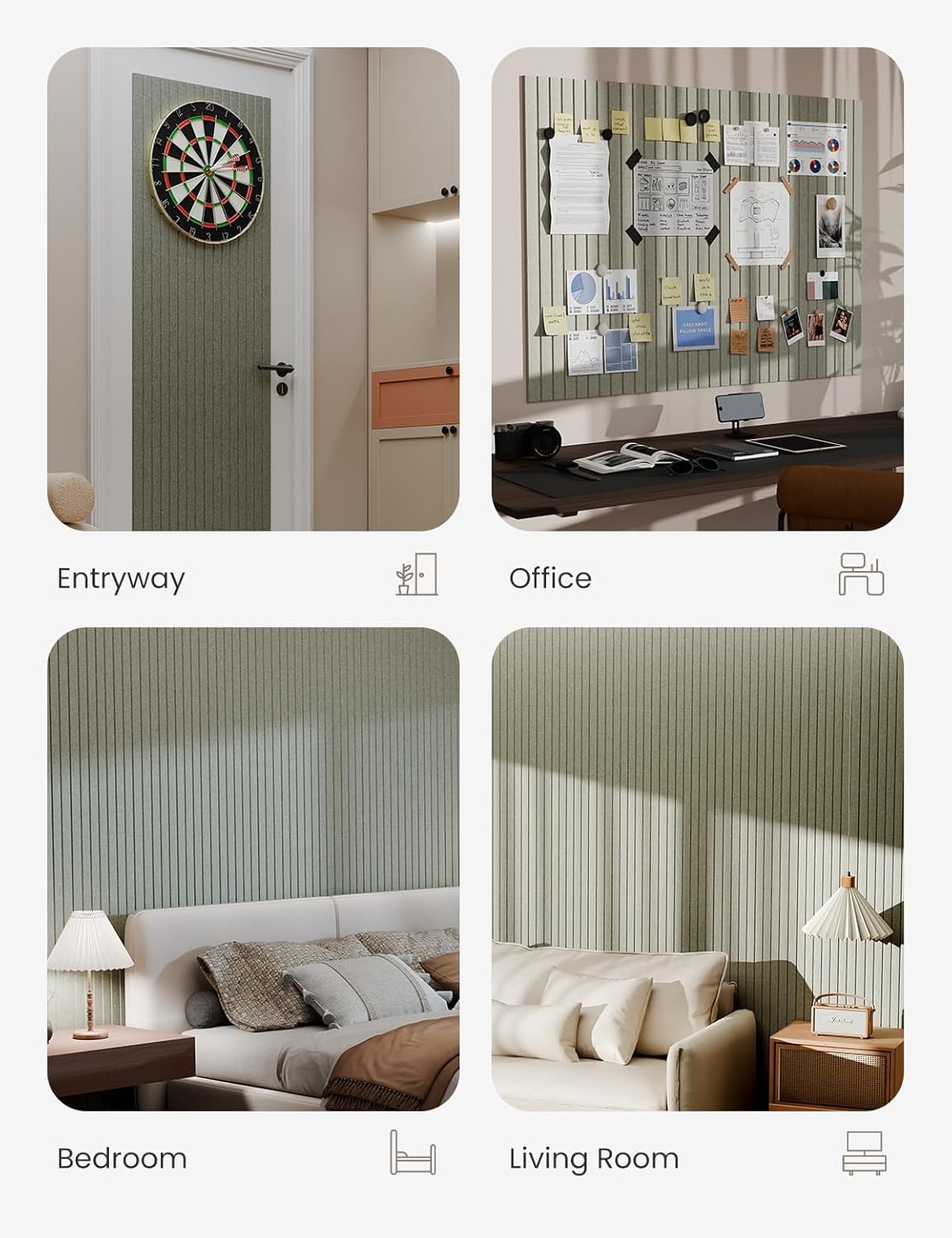 Bumusty Large Cork Board Alternative-47 x35 Felt Bulletin Board Tiles, with 30 Pushpins, 70 Adhesive Tabs, 12-Pack Slat Wall Paneling, Cork Boards for Office Push Pin Board Felt Board-Sage