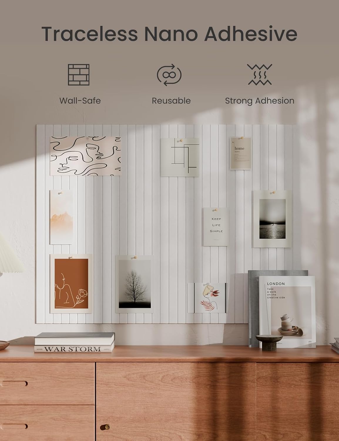 - 【Traceless Installation】 Includes 70 strong nano adhesive tabs that stick firmly yet can be removed.