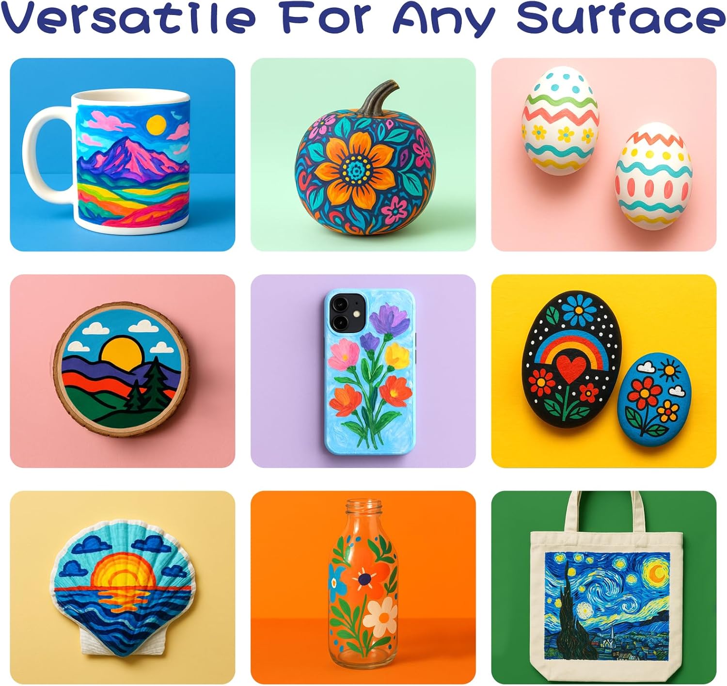 - Multi-Surface Masters: From rocks, wood, glass, porcelain, ceramic, plastic, leather, canvas, metal, to shoes, these acrylic markers are engineered to perform flawlessly. Once dry, they turn waterproof, making your creations last for years!