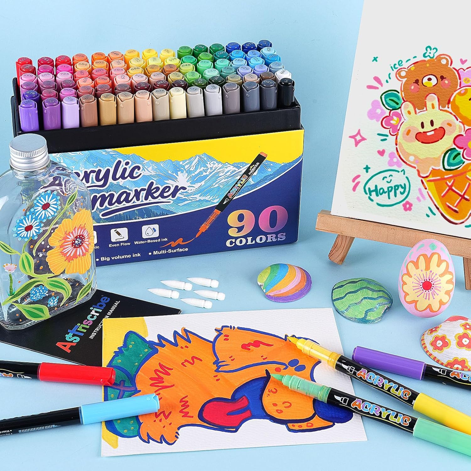 - 90 Vibrant Colors & Instant Start! : Jump into creativity with 48 rich, opaque acrylic paint markers – no shaking or priming needed! Just uncap and create bold, bleed-proof art on any surface.