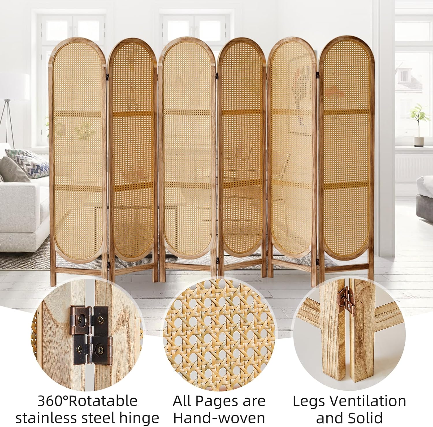 - Vintage Arch Design: The rattan room divider combines classic European vintage style with modern home aesthetics, especially for those who are looking for a unique decorative style. The upper part of the room screen is designed in a beautiful European vaulted shape, which not only adds an artistic touch to the space, but also brings a strong historical flavor to your home environment.