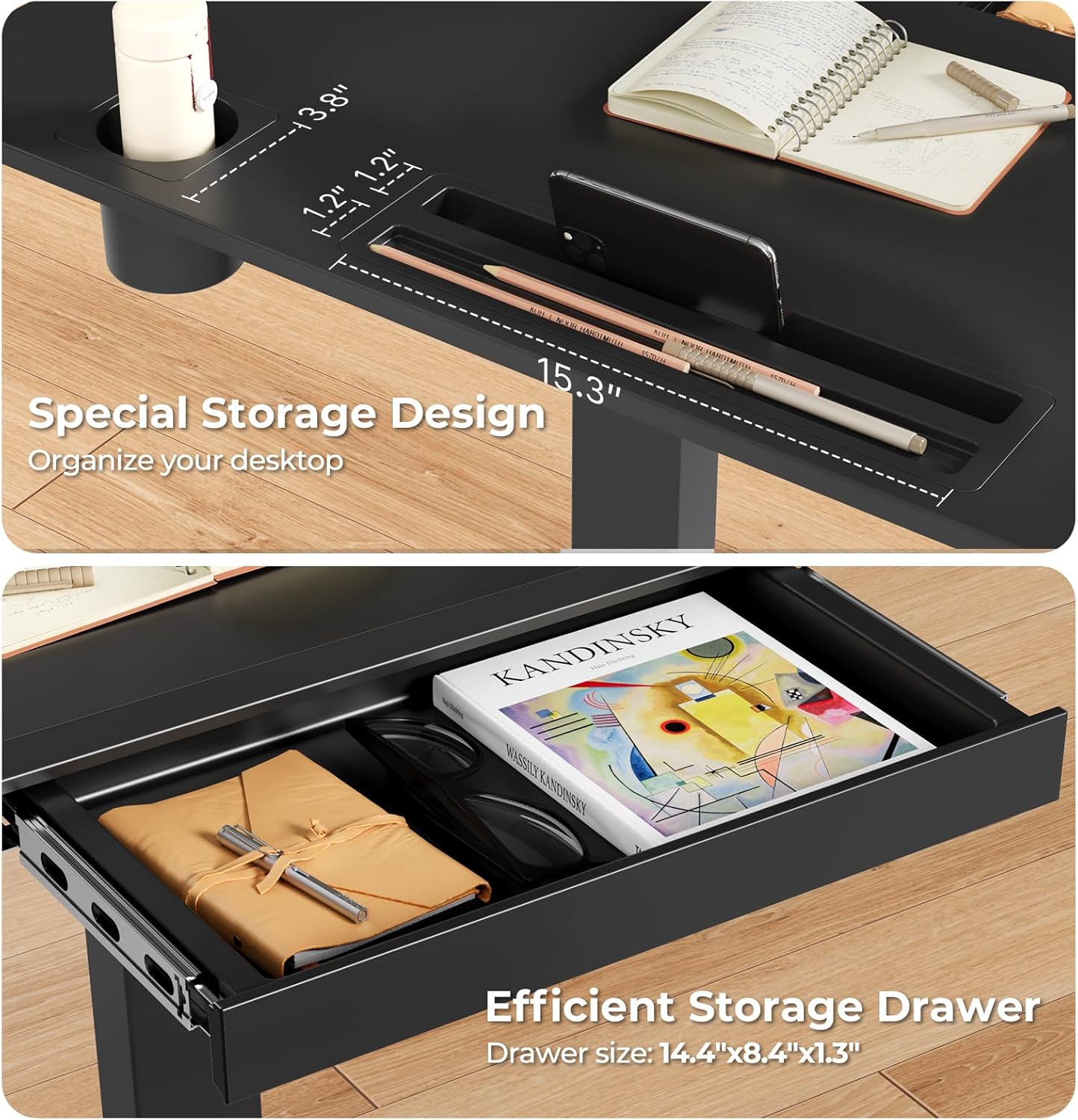 - Convenient Storage Drawer: Small standing desk features a drawer (Size: 14.4"×8.4"×1.3") that offers generous storage for office supplies, helping maintain a clean workspace. Additionally, 2 hooks design facilitates organization of headset or backpack