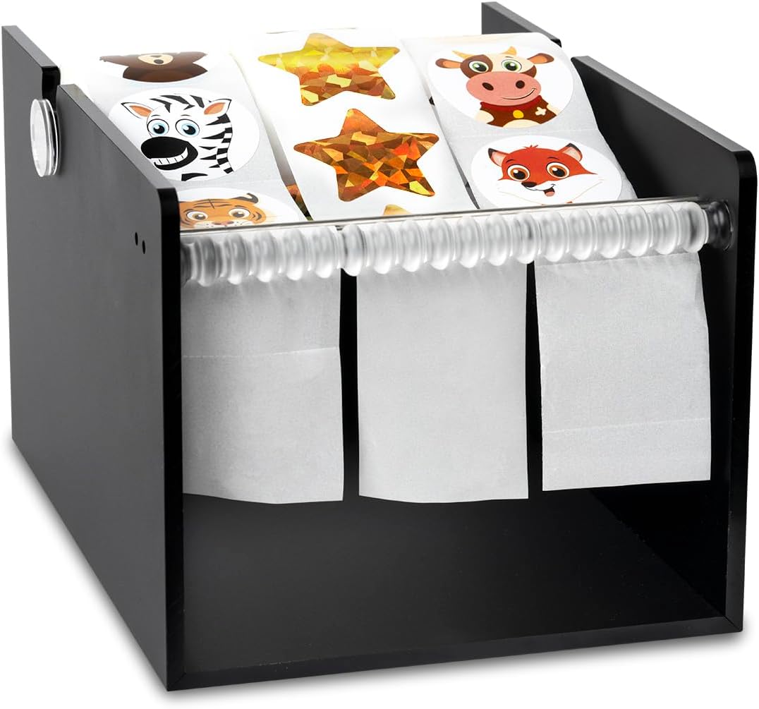 - HOW TO USE: Add sticker roll to core. Pull on the roll to give some length and slide below the first metal bar, above the second metal bar, and back under acrylic coiled stick to allow the sticker to peel off the roll with ease. (Instruction design included). Comforting reliability and can be used at home, workplace, school, library, restaurant or special events.