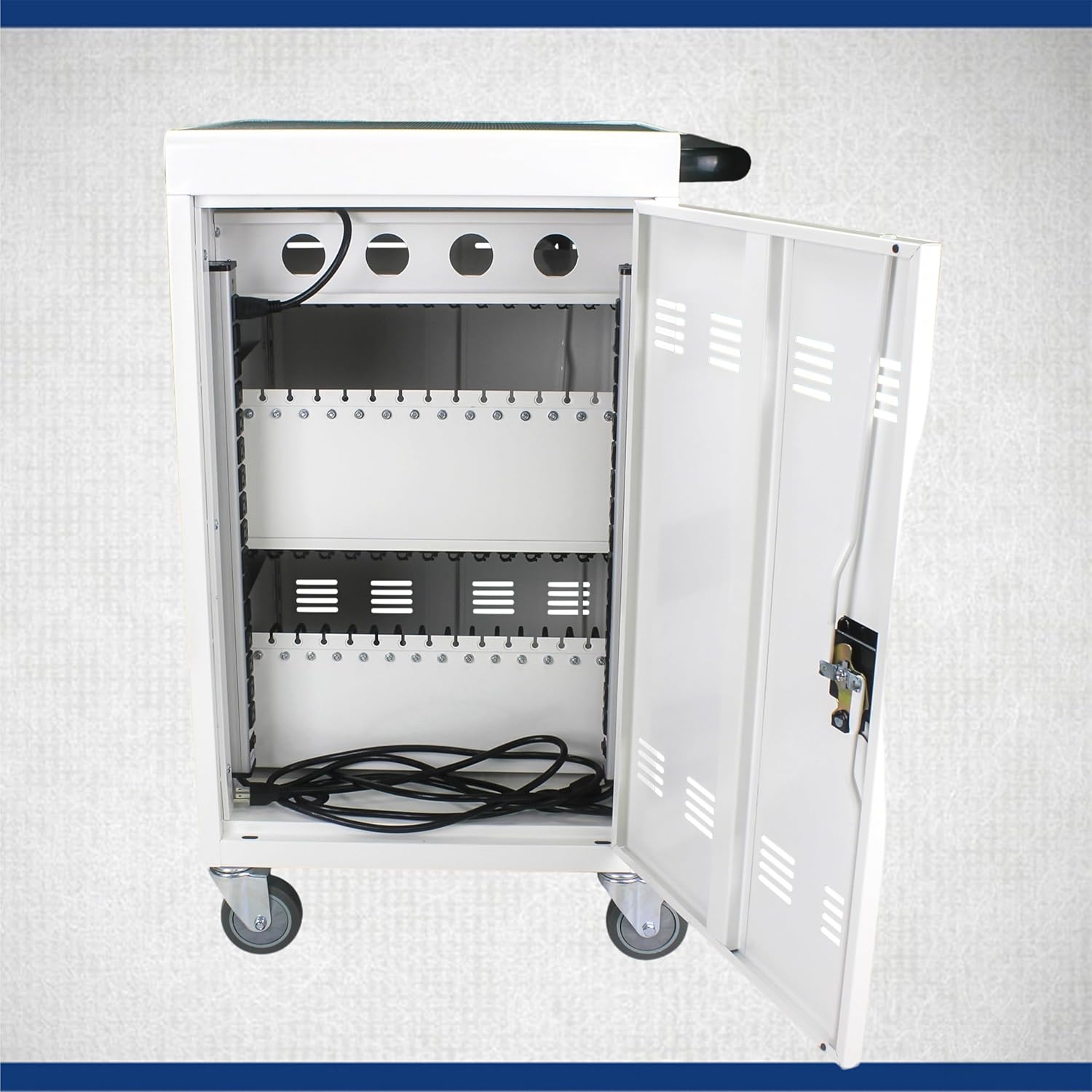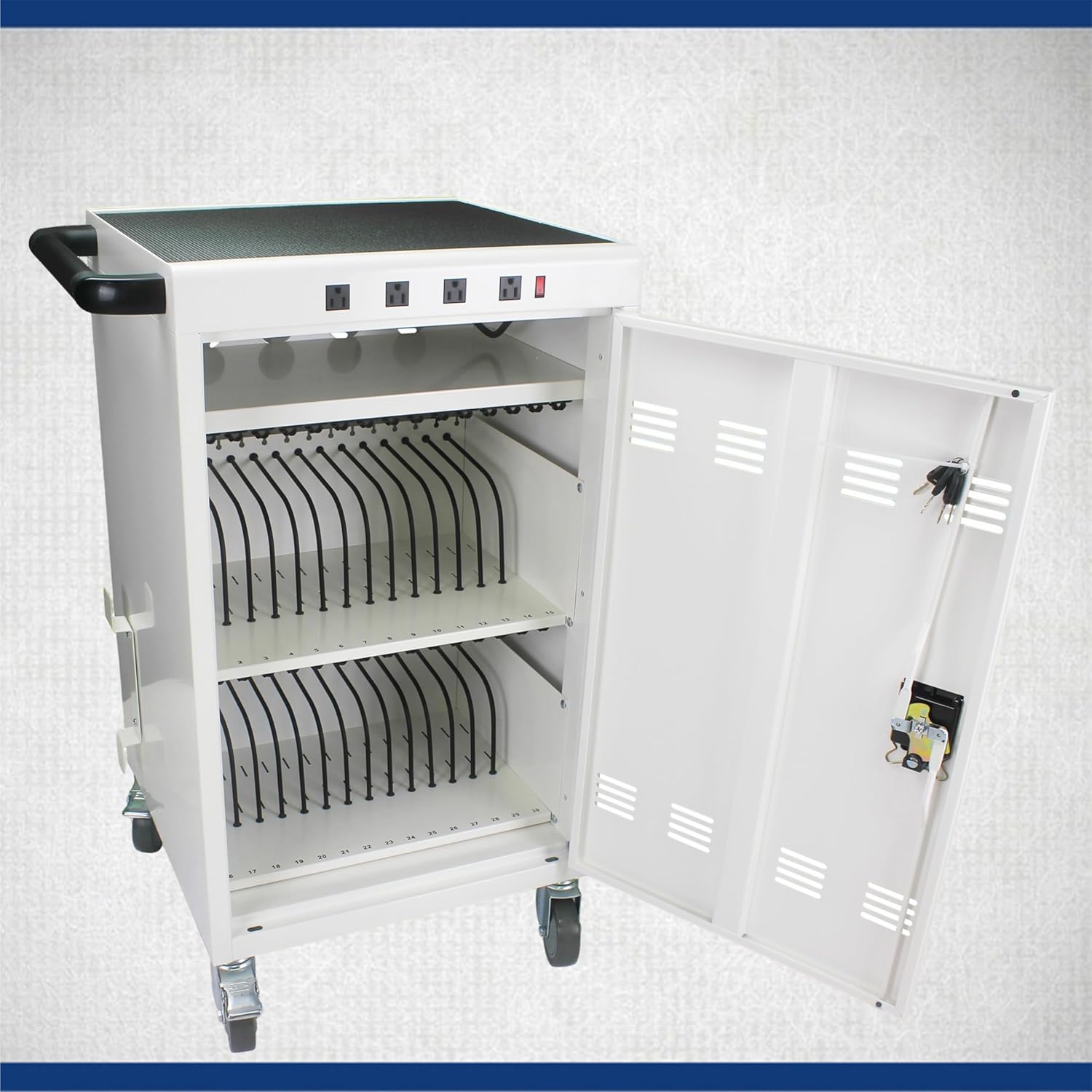 - 【Locking & safety】:charging cart with lock & key for the front and back door, will Protect your devices when it's in working or you are moving the cart. And 2 locking caster wheels will keep cart in place.
