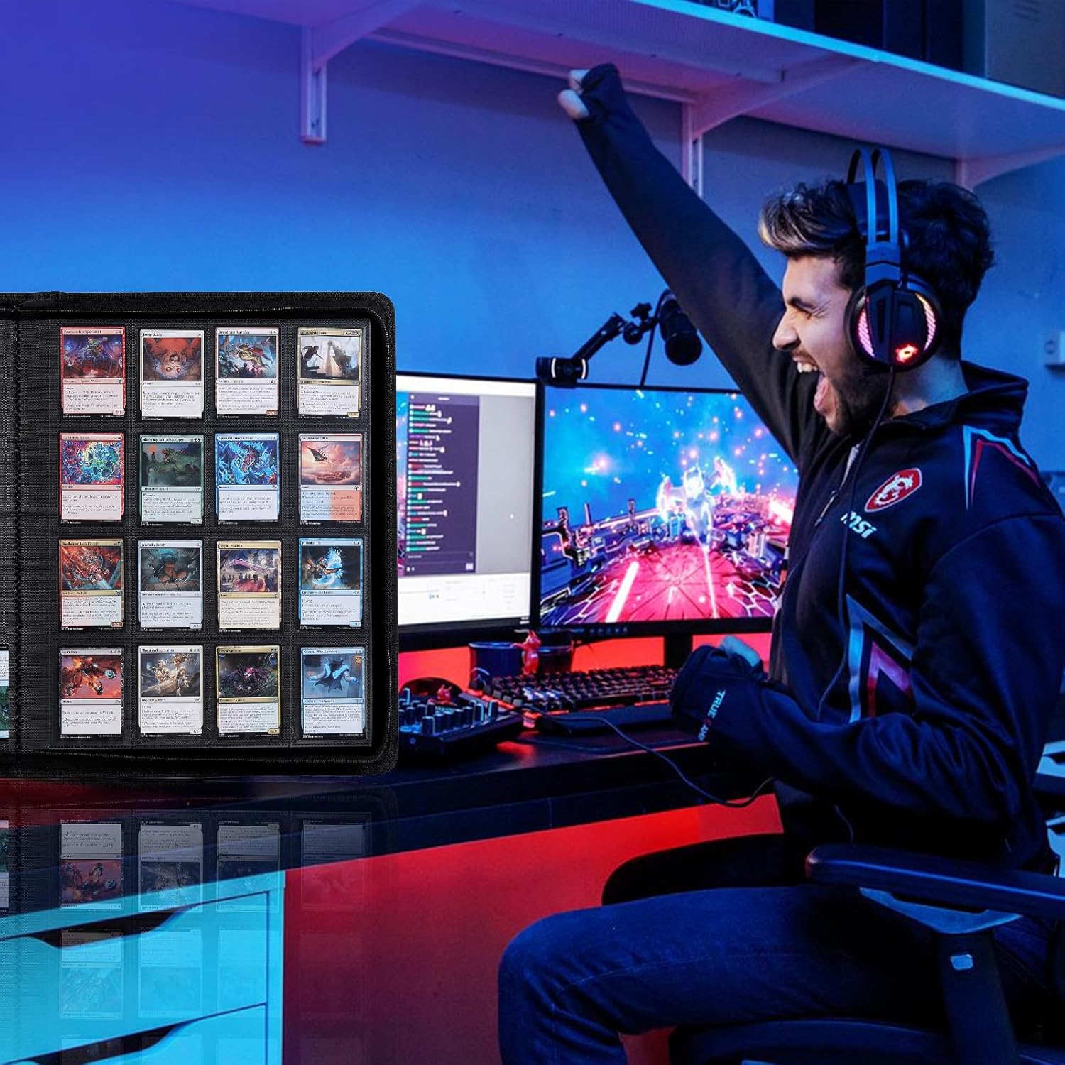 Snekdy premium 1024-pocket trading card binder, 16-pocket cards album, waterproof PU-leather Cover album with side loading, holds gaming, baseball, basketball & sports cards (Black)