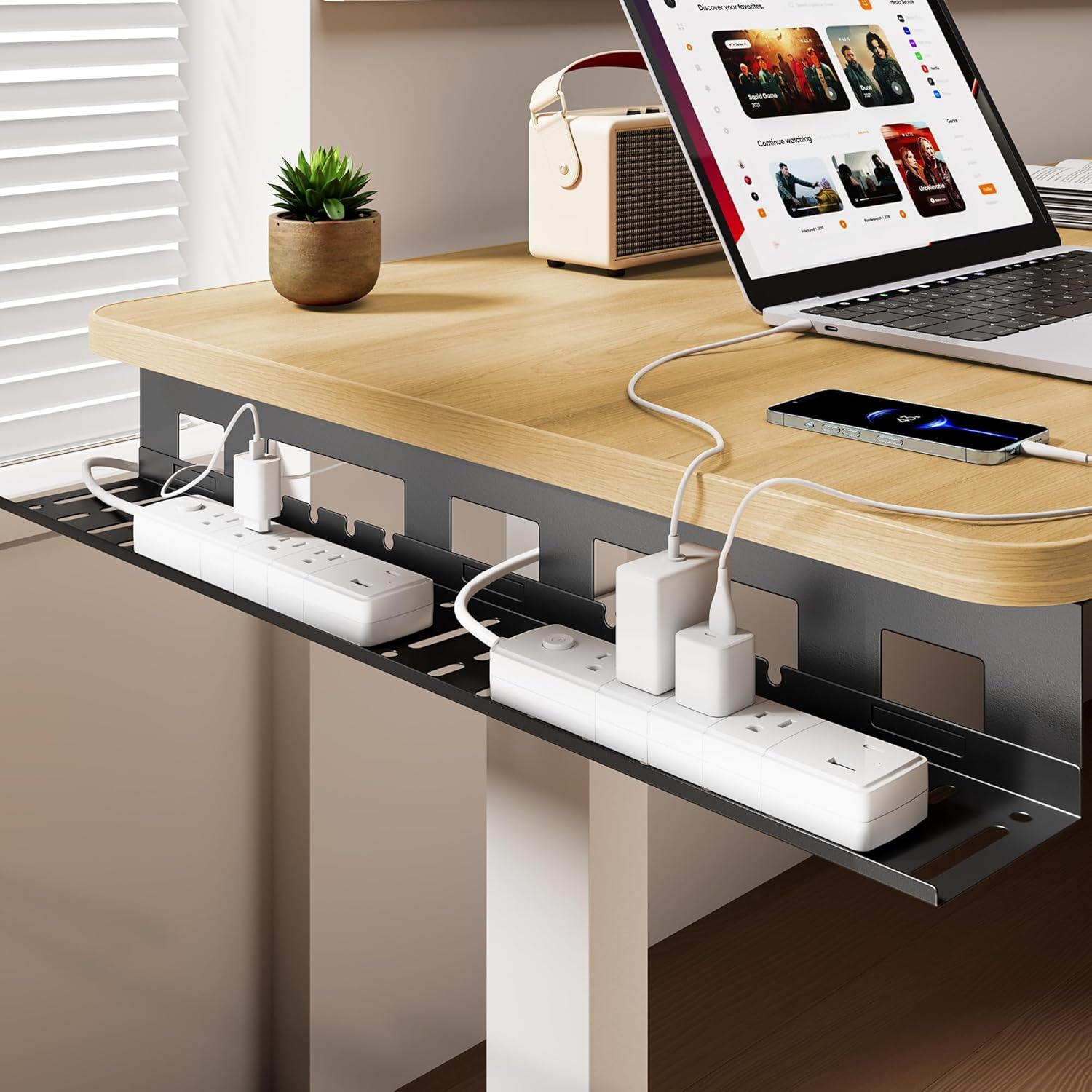 - 【Smart Size, Strong Build】Measuring 31.5 x 5.5 x 4 inches, this desk cable management solution holds up to 11lbs — enough space and strength for your power strip, chargers, and excess wires. A must-have for efficient wire management under desk setups.