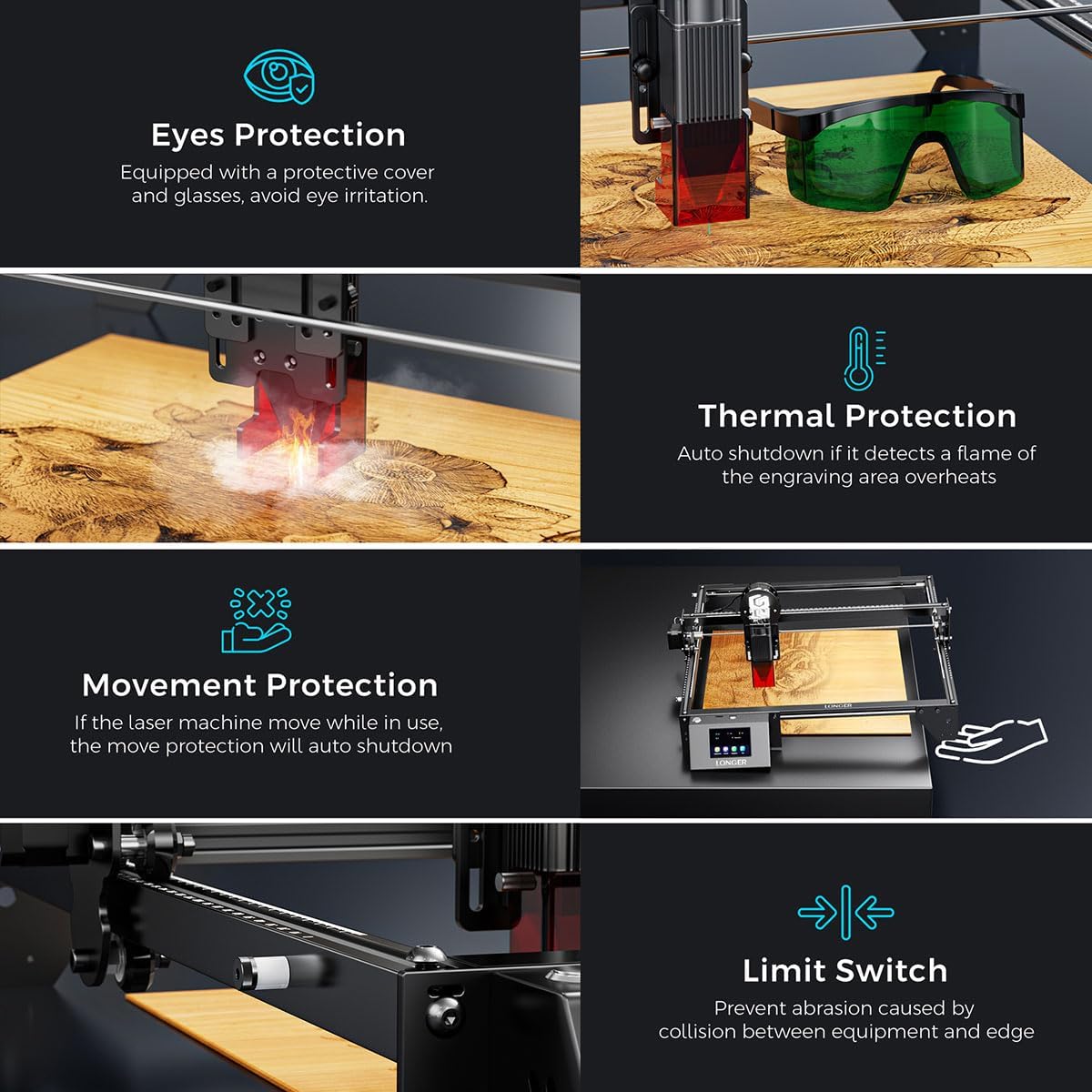 - Powerful Performance: This laser cutter has a 32-bit core motherboard, which provides powerful performance for more stable and smooth operation. You can transfer data through 4 methods: Wi-Fi, USB cable, APP, and TF card. With support for offline operation, you can use this laser engraving machine anytime and anywhere. And the 3.5-inch Touch Screen makes it more convenient to use
