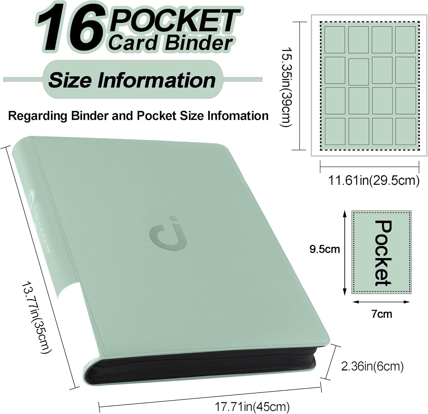 - Massive Storage Capacity - Each binder comes equipped with 25 premium double-sided sheets. Each sheet securely holds 64 cards, Our card binder 16 pocket providing a massive total capacity of 1600 cards. Effortlessly accommodates both sleeved and unsleeved cards, meeting all your high-volume storage needs.