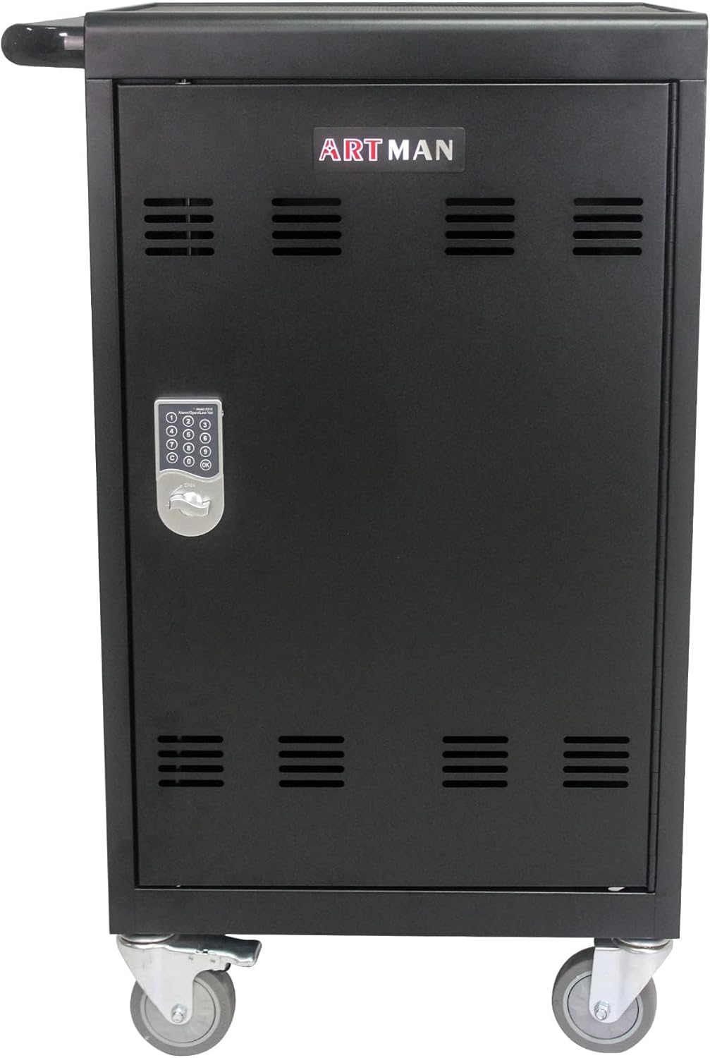 - 【Password lock】:Charging cart with combination lock for the front door, will Protect your devices when it's in working or you are moving the cart. And 2 locking caster wheels will keep cart in place.