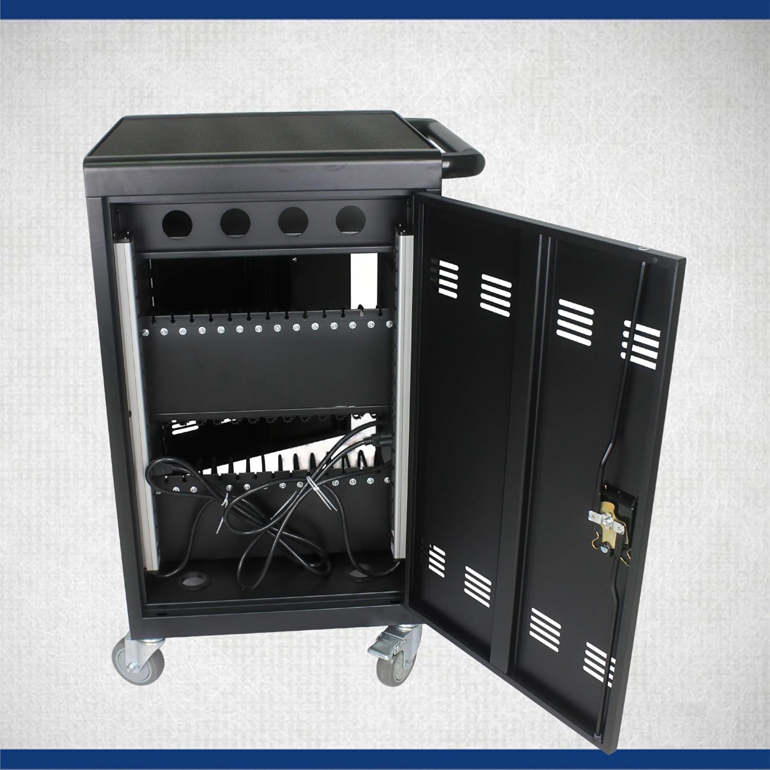 - 【Locking & safety】:charging cart with lock & key for the front and back door, will Protect your devices when it's in working or you are moving the cart. And 2 locking caster wheels will keep cart in place.