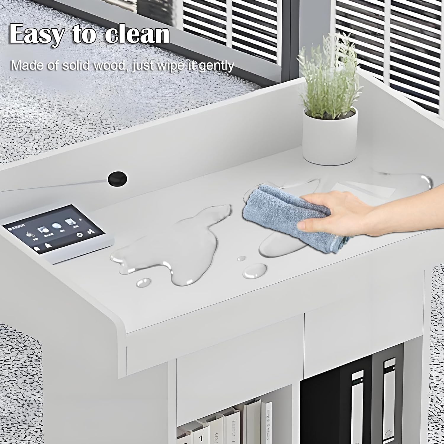 Solid Wooden Podium Stand Podiums for Classroom Lectern Podium Stand Wood Church Pulpit with 3 Levels of Storage and Heightened Baffles (White, 31.5in)