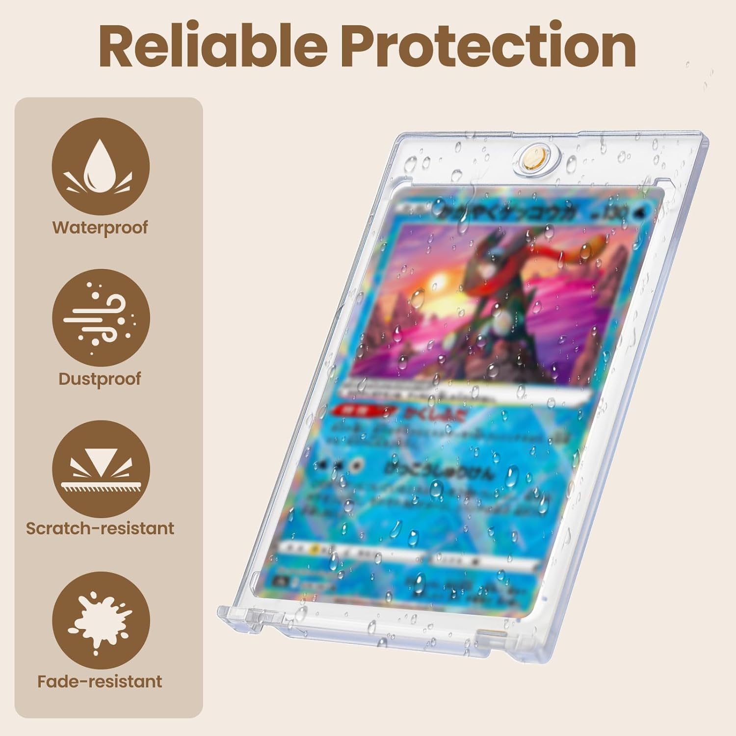 - Built to Last: Made with acrylic, this card display case offer water and dust resistance to protect your cards from scratches, wear, and moisture. Rounded corners prevent damage and ensure lasting protection