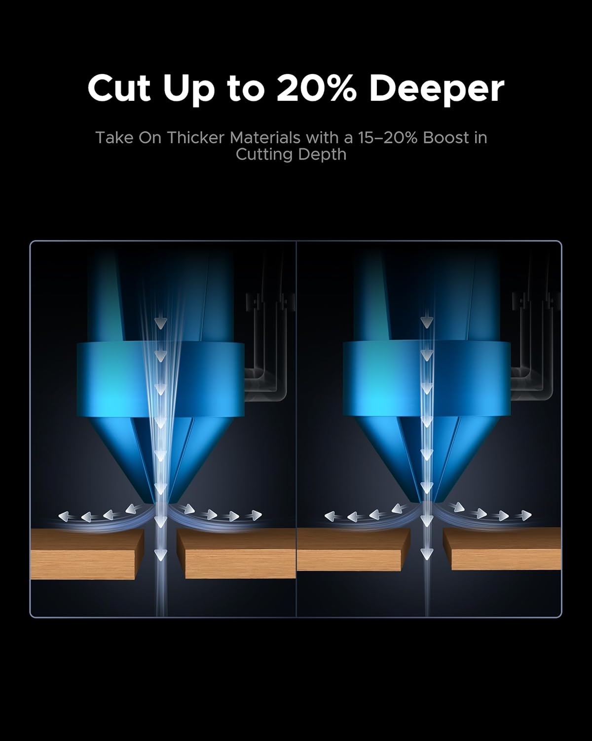 - 20% Deeper Cuts: Our CO2 laser airway module increases cutting depth by 15-20%, allowing you to tackle thick stock projects that previously required multiple passes