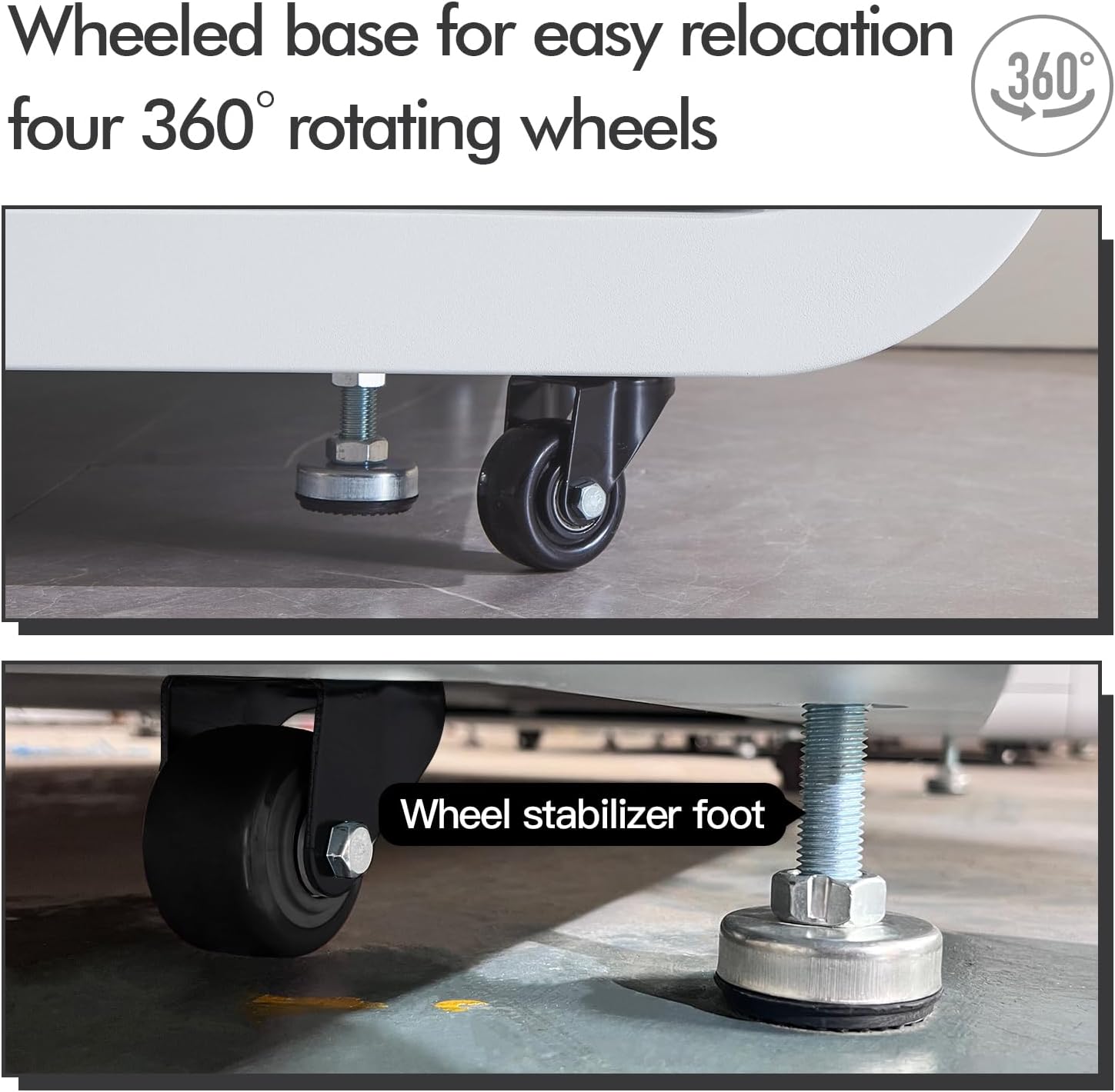 - [Effortless Relocation & Secure Positioning] Equipped with four 360° rotating wheels for smooth movement in any direction. Each wheel is paired with a stabilizer foot, allowing the booth to be effortlessly relocated and securely locked in place when needed—ensuring both flexibility and rock-solid stability.