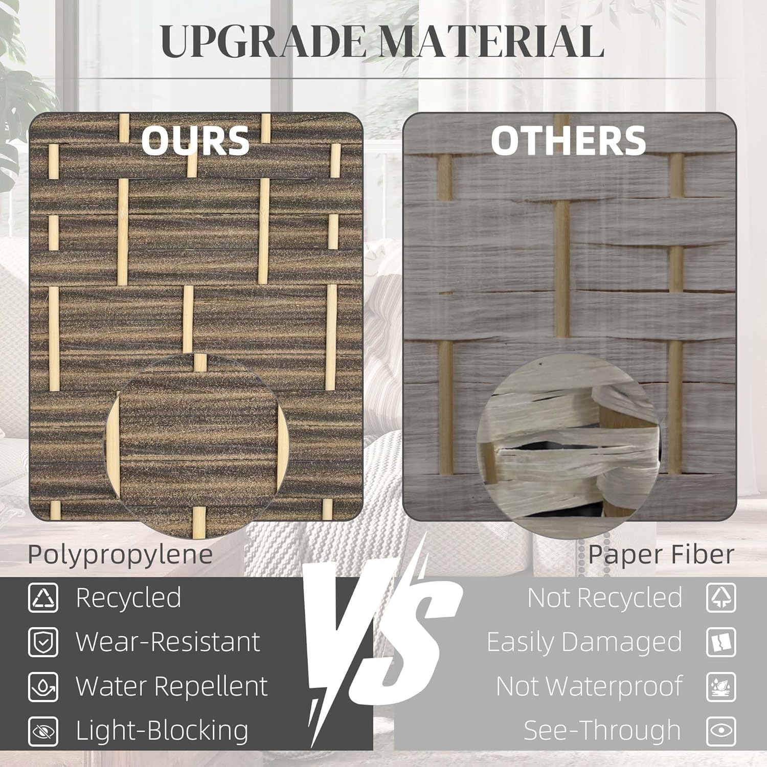HOMCOM 4 Panel Room Divider, 6' Tall Folding Privacy Screen, Hand-Woven Freestanding Wall Partition for Home Office, Bedroom, Dark Rustic Oak